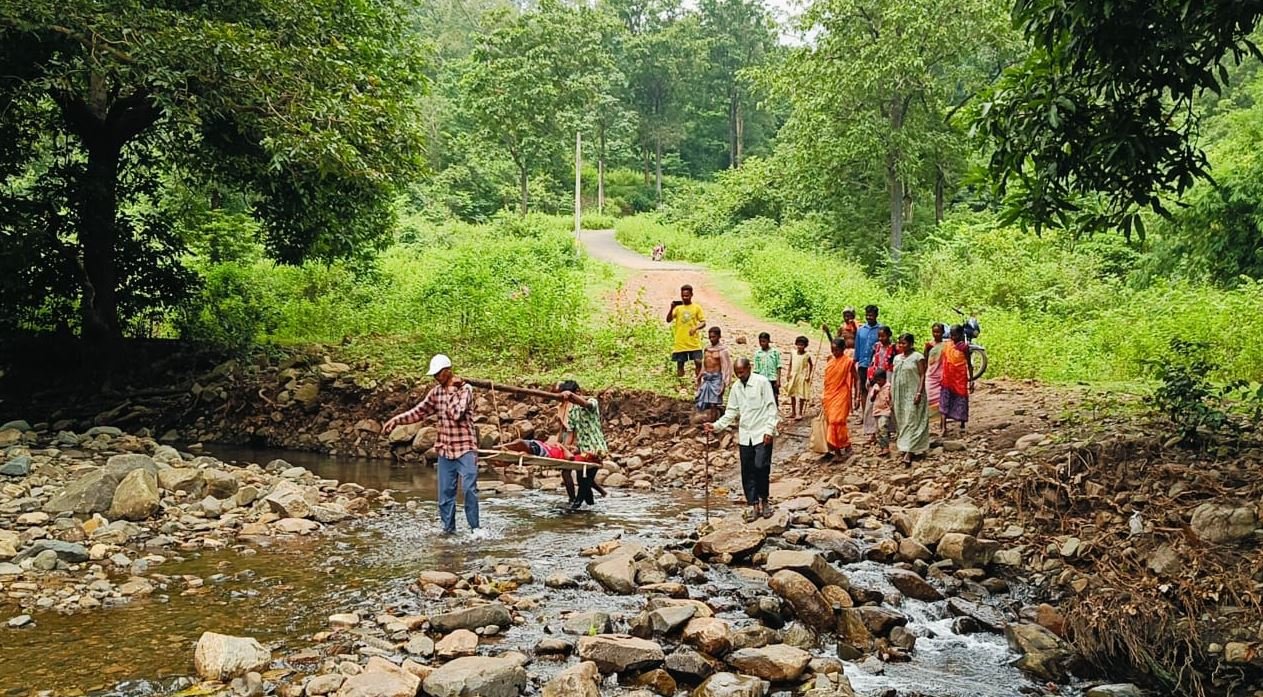 ଭାରରେ ବୁହାହେଲେ ରୋଗୀ, ଏପରି ଅଭାବନୀୟ ଦୃଶ୍ୟ ଦେଖିବାକୁ ମିଳିଛି ମାଲକାନଗିରି ଜିଲ୍ଲା ଚିତ୍ରକୋଣ୍ଡା ବ୍ଲକ ନୂଆଗୁଡା ପଂଚାୟତ ର ରଥଗୁଡା ଗ୍ରାମରେ। ତେବେ କୋରୁକୋଣ୍ଡା ବ୍ଲକ ନିଳାକାମ୍ବେରୁ ପଞ୍ଚାୟତ ସାରିଆପାଲ୍ଲୀ ଗ୍ରାମରୁ ଚିତ୍ରକୋଣ୍ଡା ବ୍ଲକ ନୂଆଗୁଡା ପଞ୍ଚାୟତ ର ଆରଏସସି-୧୦ କୁ ପାହାଡ଼ କାଟି ଏକ ପ୍ରଧାନମନ୍ତ୍ରୀ ସଡକ ଯୋଜନା ନିର୍ମାଣ ହୋଇଛି। ଏହି ସଡକ ଟି ନିର୍ମାଣ ହୋଇଛି ସତ କିନ୍ତୁ ନିଳାକାମ୍ବେରୁ ପଂଚାୟତର ମନ୍ତ୍ରୀପୁଟ ଗ୍ରାମ ନିକଟରେ ଏକ ସେତୁ ନିର୍ମାଣ କାର୍ଯ୍ୟ କରାଯାଇନାହିଁ। ଯାହାଫଳରେ ଏହି ବ୍ରିଜ ର କାର୍ଯ୍ୟ ହୋଇନଥିବା ହେତୁ ଏହି ଝରଣା ଦେଇ ଲୋକେ କେବଳ ବାଇକ ରେ ହିଁ ଯାତାୟାତ କରିପାରୁଛନ୍ତି। ରାସ୍ତା କାମ ସମ୍ପୂର୍ଣ ହୋଇ ବି ଏହି ସେତୁ କାର୍ଯ୍ୟ ଆରଡି ବିଭାଗ ପକ୍ଷରୁ କରାଯାଉ ନଥିବାରୁ କୌଣସି ଚାରି ଚକିଆ ଯାନ କିମ୍ବା ଆମ୍ବୁଲାନ୍ସ ଗ୍ରାମକୁ ପହଂଚିପାରୁନାହିଁ। ତେଣୁ ବାଧ୍ୟ ହୋଇ ଗ୍ରାମର ଯଦି କାହାର ସ୍ୱାସ୍ଥ୍ୟବସ୍ଥା ଖରାପ ହୁଏ ତେବେ ଏହିପରି ଭାବେ ଷ୍ଟ୍ରେଚର ମାଧ୍ୟମରେ ଭାର ରେ ବୁହା ହୋଇ ରୋଗୀ ଙ୍କୁ ଅଣୁଛନ୍ତି। ପରେ ସେଠାରୁ ଆସି ଆମ୍ବୁଲାନ୍ସ ରୋଗୀ ଙ୍କୁ ମେଡିକାଲ ନେଇଯାଉଥିବା ଗ୍ରାମବାସୀ କହିଛନ୍ତି। ଆଜି ରଥଗୁଡା ଗ୍ରାମର ଡମ ପୂଜାରୀ(୫୦) ଙ୍କ ସ୍ୱାସ୍ଥ୍ୟବସ୍ଥା ଭୀଷଣ ଖରାପ ହୋଇଥିଲା। ଫଳରେ ତାଙ୍କୁ ମେଡିକାଲ ନେବା ବାଟରେ ଏପରି ଅଭାବନୀୟ ଦୃଶ୍ୟ ଦେଖିବାକୁ ମିଳିଛି। ତେବେ ତୁରନ୍ତ ଗ୍ରାମବାସୀ ଏହି ସେତୁ ନିର୍ମାଣ କାର୍ଯ୍ୟ ଆରମ୍ଭ କରିବାକୁ ଦାବି କରିଛନ୍ତି।